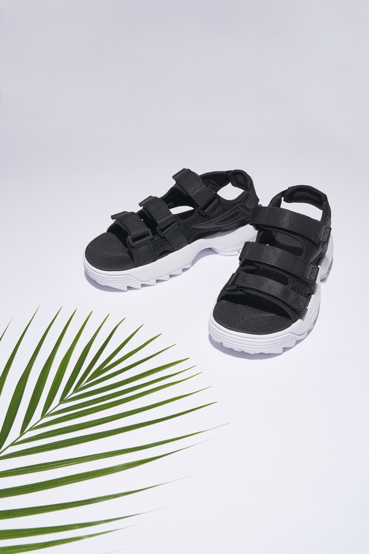 미국, 유럽을 휩쓸고 지난 6월 국내에 상륙한 인기 슈즈 '디스럽터'가 2017년 여름을 맞아 샌들로 탄생했다. 스포츠 브랜드 휠라(FILA)는 전 세계적인 베스트셀링 슈즈 ‘디스럽터’를 스포츠 샌들 형태로 재해석한 ‘디스럽터(DISRUPTOR) 샌들’을 출시했다고 3일 밝혔다. 레트로와 스트리트 무드를 결합해 다양한 착장에 매치하기 좋을 뿐만 아니라 시원한 착용감까지 갖췄다. 톱니 모양의 과감한 키높이 오버솔, 휠라를 상징하는 FLAG 패턴의 측면 디자인에 발꿈치 부분에는 휠라 리니어 로고 포인트탭을 적용했다. 블랙과 화이트‧네이비‧레드 혼합형 등 총 2가지 색상, 사이즈는 230~250m(10단위)로 출시됐으며, 가격은 5만 9000원.