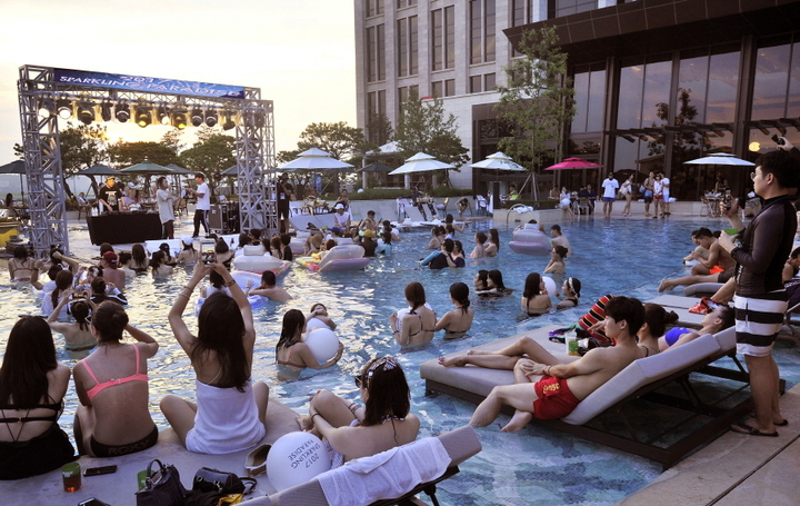 [쿠키뉴스=박효상 기자] 6일 인천 영종도 파라다이스시티에서 풀파티 ‘스파클링 파라다이스’가 열렸다. 이번 행사에는 팔로알토와 레디, G2 등 힙합 뮤지션들과 유명 DJ들이 참석해 화려한 공연을 펼쳤다.
