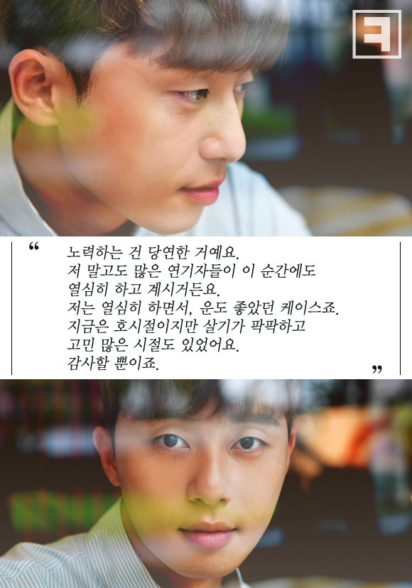 “노력하는 건 당연한 거예요. 저 말고도 많은 연기자들이 이 순간에도 열심히 하고 계시거든요. 저는 열심히 하면서, 운도 좋았던 케이스죠. 지금은 호시절이지만 살기가 팍팍하고 고민 많은 시절도 있었어요. 감사할 뿐이죠.”
