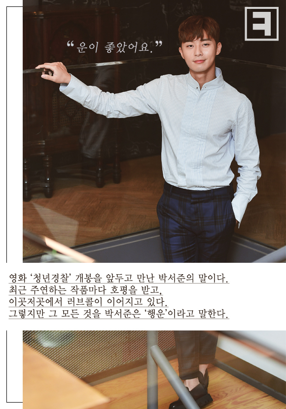 “운이 좋았어요.” 영화 ‘청년경찰’ 개봉을 앞두고 만난 박서준의 말이다. 최근 주연하는 작품마다 호평을 받고, 이곳저곳에서 러브콜이 이어지고 있다. 그렇지만 그 모든 것을 박서준은 ‘행운’이라고 말한다.