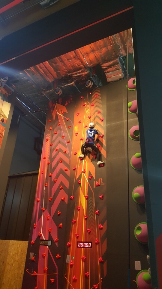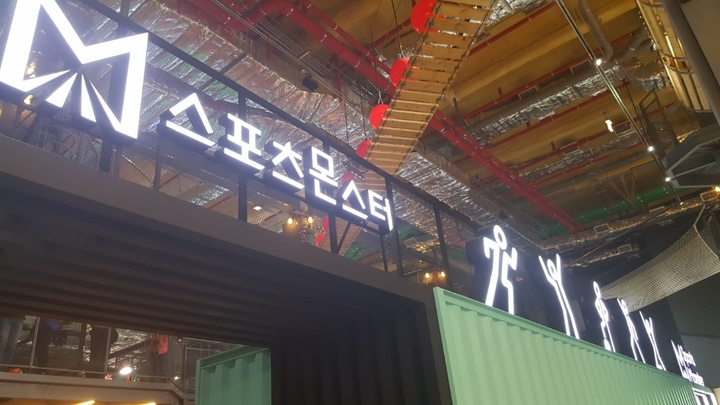 스포츠몬스터에는 실내 암벽등반을 위한 코스도 두 개가 마련돼 있었다. 아찔한 높이까지 올라가면 다양한 놀이기구가 펼쳐진다. 노출된 외벽과 검은 벽 긴 줄에 매달려 타는 짚코스터와 중간에 손을 놓으면 마치 떨어진 것처럼 미끄럼을 타는 드롭슬라이더는 남자 아이들이 좋아할 만한 놀이기구로 보였다. 사격을 변형한 클레이슈팅과 거닝, 당구의 변형인 스눅볼 등 다양한 놀이기구가 흥미진진하게 펼쳐졌다.