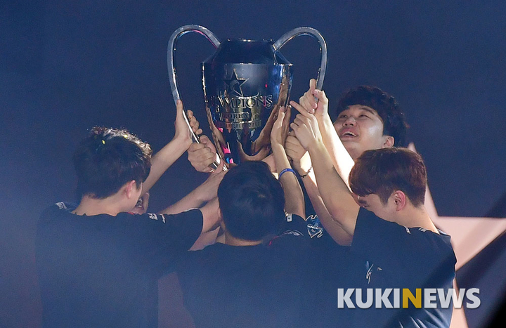 [쿠키뉴스=박효상 기자] 롱주 게이밍이 26일 오후 서울 올림픽로 잠실학생체육관에서 열린 '2017 리그 오브 레전드 챔피언스 코리아(롤챔스) 서머' 결승에서 SKT T1을 세트 스코어 3대1로 꺾고 우승했다.