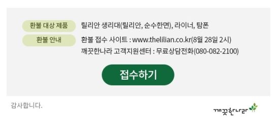 깨끗한나라 관계자는 "28일 오후 2시부터 릴리안 브랜드 전 제품의 환불 접수를 받는다"라고 밝혔다.