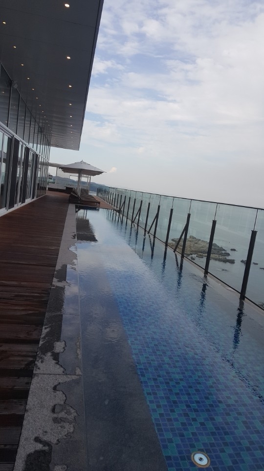 7일 방문한 힐튼 부산의 프라이빗 수영장. 왼쪽엔 풀이, 오른쪽엔 바다가 펼쳐져 있다.