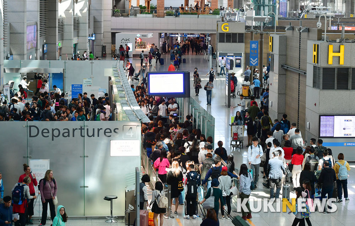 인천국제공항공사는 다음 달 9일까지 인천공항 이용 여객이 약 195만 명에 달해 작년 추석연휴에 비해 10.3% 증가할 것으로 예측된다고 밝혔다.