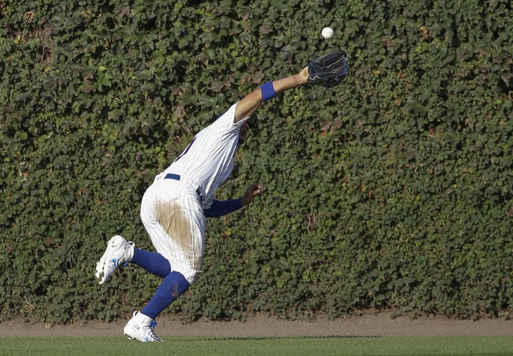4회초 컵스의 중견수 존 제이가 플라이볼을 잡고 있다.