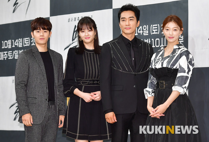 배우 김동준과 고아라, 송승헌, 이엘이 11일 오후 서울 언주로 임피리얼 팰리스에서 열린 OCN 새 오리지널 드라마 ‘블랙’ 제작발표회에 참석해 포토타임을 갖고 있다.