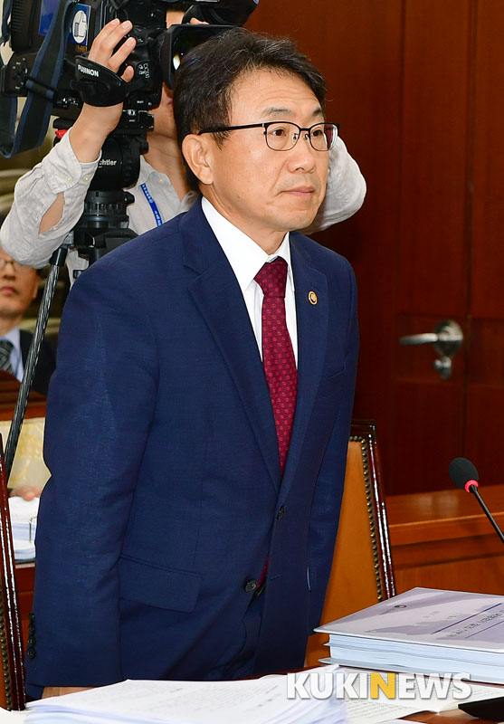 권덕철 보건복지부 차관이 12일 오전 서울 영등포구 여의도 국회에서 열린 보건복지위원회 보건복지부 국정감사에서 인사하고 있다.
