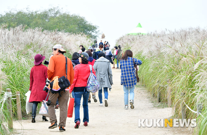 16일 오전 서울억새축제가 열린 서울 마포구 하늘공원에서 시민들이 즐거운 시간을 보내고 있다.