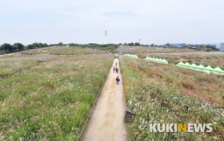 16일 오전 서울억새축제가 열린 서울 마포구 하늘공원에서 시민들이 즐거운 시간을 보내고 있다.