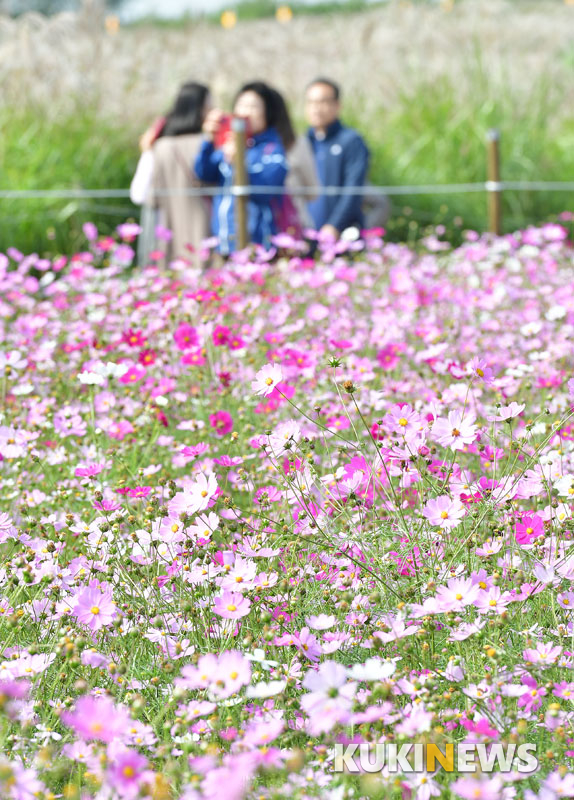 16일 오전 서울억새축제가 열린 서울 마포구 하늘공원에서 시민들이 즐거운 시간을 보내고 있다.