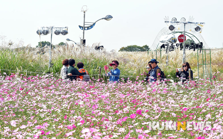 16일 오전 서울억새축제가 열린 서울 마포구 하늘공원에서 시민들이 즐거운 시간을 보내고 있다.