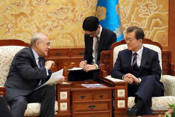 문재인 대통령, 앙헬 구리아 OECD 사무총장과 포용적 성장 논의