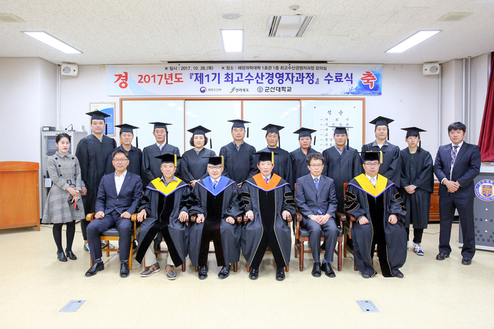 군산대학교 해양과학대학은 지난 26일 ‘2017년도 제1기 최고수산경영자과정 수료식’을 개최하고 박광수 등 14명에게 수료증을 수여 했다.