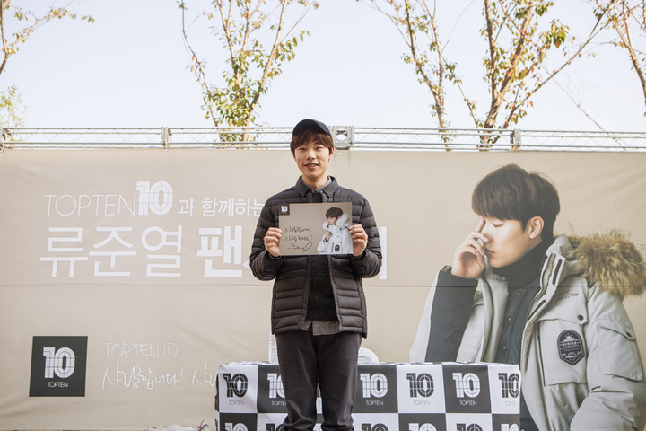 배우 류준열이 28일 경기 고양 스타필드 탑텐 매장에서 열린 팬사인회에 참석해 포즈를 취하고 있다.