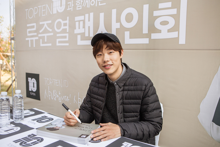 배우 류준열이 28일 경기 고양 스타필드 탑텐 매장에서 열린 팬사인회에 참석해 포즈를 취하고 있다.