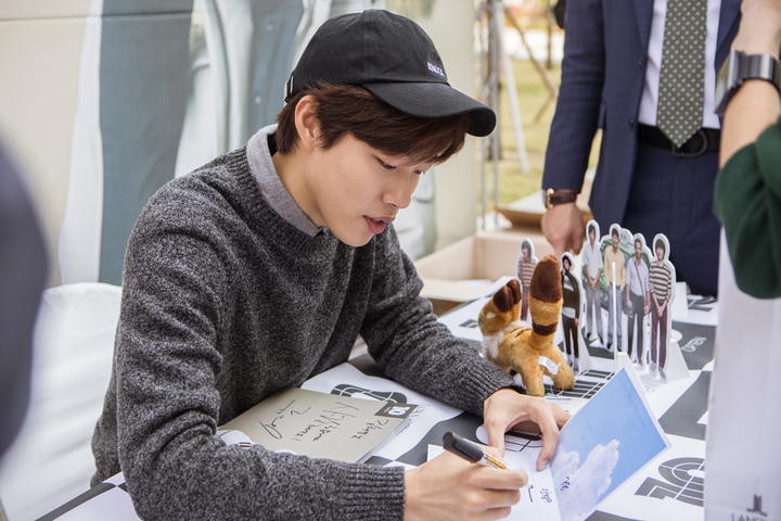 배우 류준열이 28일 경기 고양 스타필드 탑텐 매장에서 열린 팬사인회에서 팬과 즐거운 시간을 보내고 있다.