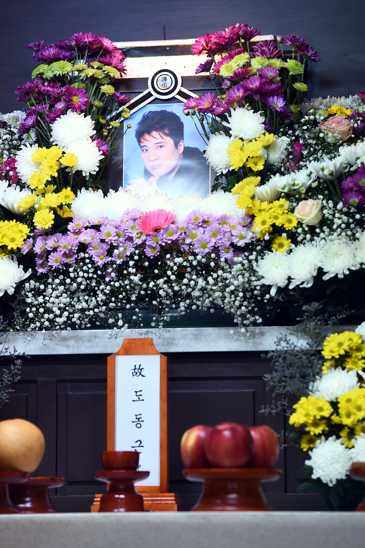 지병으로 사망한 남성 듀오 '육각수' 원년멤버 도민호가 30일 서울 도봉병원장례식장에 마련됐다.