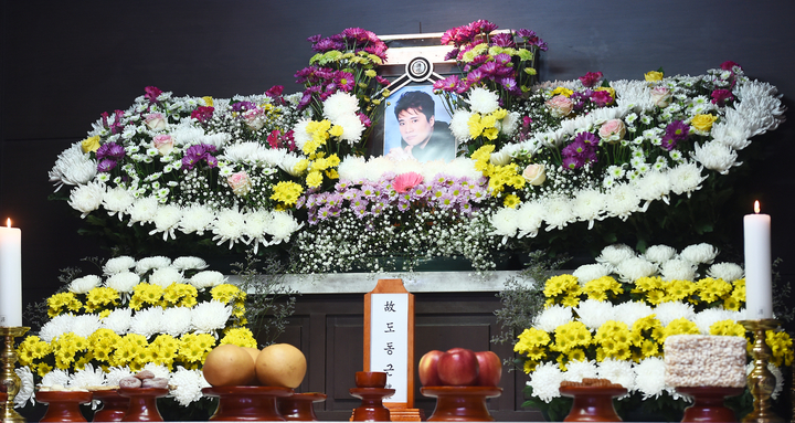 지병으로 사망한 남성 듀오 '육각수' 원년멤버 도민호가 30일 서울 도봉병원장례식장에 마련됐다.