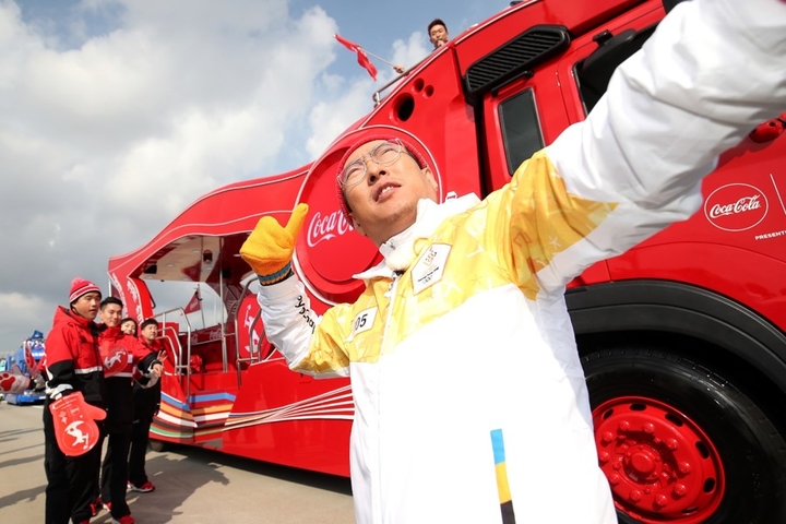 2018 평창동계올림픽 국내 성화봉송 주자인 개그맨 박명수가 1일 오후 인천 중구 인천대교에서 성화봉송 후 포즈를 취하고 있다.