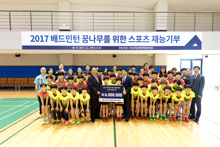 (재)전북은행장학문화재단은 JB GYM에서 전북은행 배드민턴 선수들과 ‘2017 배드민턴 꿈나무를 위한 스포츠 재능기부’를 2일 개최했다.