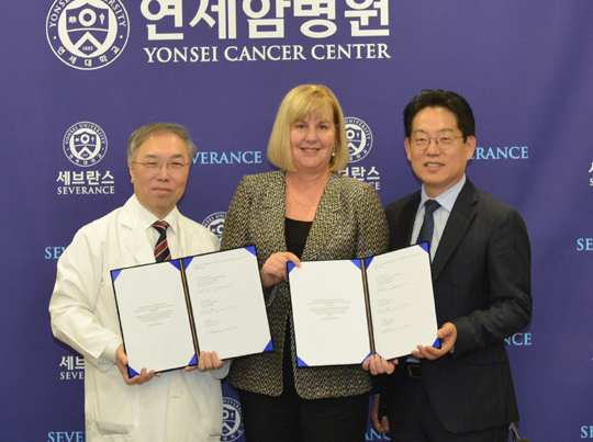 연세암병원 회의실에서 협약식에는 송당 암연구센터 정현철 센터장, 연세의료원 박민수 의과학연구처장, 연세암병원 안중배·라선영·김진석 교수 등이 참석했으며, GSK한국법인 이일섭 부사장(의학개발부), GSK 본사 캐시 루안(Kathy Rouan) 연구개발 부문 부사장 등이 참석했다.
