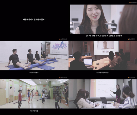 영상에서 대웅제약 직원들은 나이·성별·근무연한·국적 상관없이 역량만 있으면 본인이 가장 잘 할 수 있는 직무에 스스로 도전하고 선택 할 수 있는 직무급제도, 자율성과 몰입을 통해 업무효율을 높이는 혁신형 사무공간인 스마트오피스, 다양한 업무에 도전할 수 있는 경력개발프로그램 CDP, 시간과 공간의 제약없이 일할 수 있는 기회를 제공하는 유연근무제와 화상세미나 프로그램 등 대웅제약만의 자율적인 근무 제도를 소개했다.