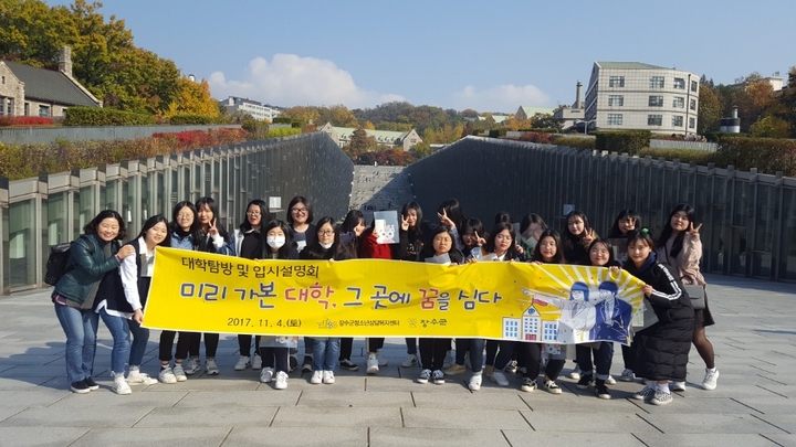전북 장수군청소년상담복지 센터는 지난 4일 ‘이화여자대학교’와‘ 하이서울유스호스텔’에서 관내 중·고등학생 28명을 대상으로 대학탐방 및 입시 설명회를 진행, 학생들로부터 큰 호응을 이끌어냈다.