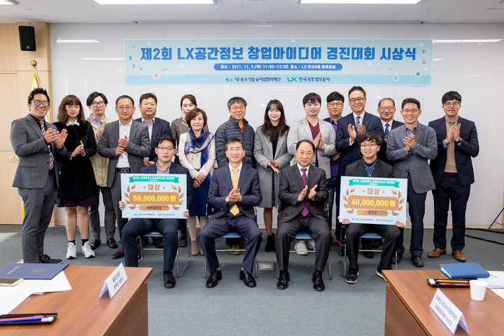LX는 지난 7월부터 ‘제2회 LX공간정보 창업아이디어 공모전’을 진행해 예비 창업자와 창업기업 10개 팀을 선정했다. 그 결과 마이샵온샵(대표 최대헌)이 창업기업 부문, 조인성 씨가 예비창업자 부문에 각각 대상을 수상하게 됐다.