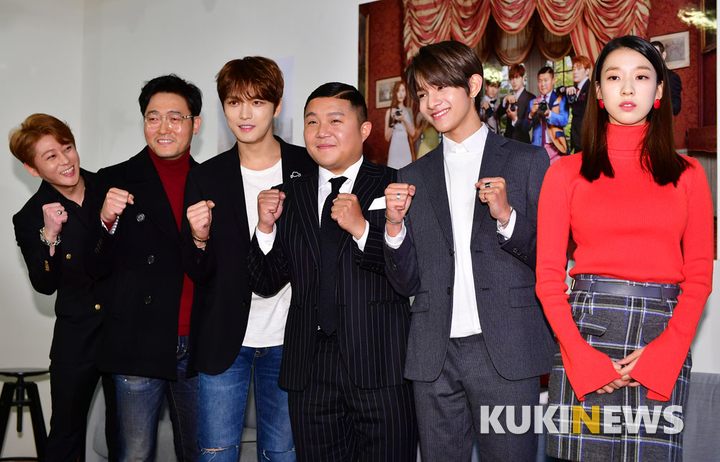 헤어 디자이너 건희, 배우 이준혁, 김재중, 개그맨 조세호, 가수 사무엘, 배우 김선아(왼쪽 사진부터)가 9일 오후 서울 강남구 한 카페에서 열린 네이버 TV 웹 예능 '포토피플' 제작발표회에서 포토타임을 갖고 있다.