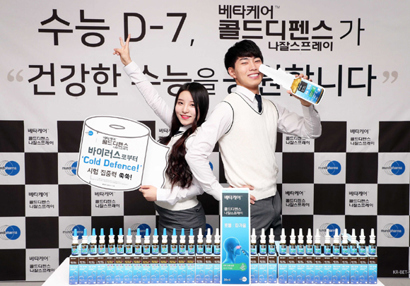 또한 한국먼디파마는 수능 당일인 오는 16일에 각 학교에서 호흡기 감염 대응법을 알리고 베타케어 콜드디펜스 나잘스프레이를 증정한다