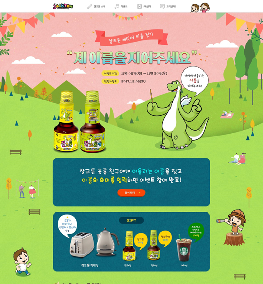어린이들이 튼튼하게 잘 클 수 있도록 도와준다는 의미를 가진 ‘잘크톤’은 아이들에게 친근한 키 큰 공룡 캐릭터를 사용하여 아이들의 선호도를 높였다. 이번 ‘잘크톤 캐릭터 이름 짓기’ 이벤트는 이러한 잘크톤 메인 캐릭터에 정체성을 불어넣어 브랜드 이미지를 더욱 친근하게 전달하려는 목적으로 기획되었다.