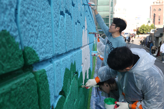 동아쏘시오그룹은 지난 9일 서울 동대문구 휘경동 회기역에서 밝고 쾌적한 거리 조성을 위한 벽화그리기 봉사활동을 실시했다.