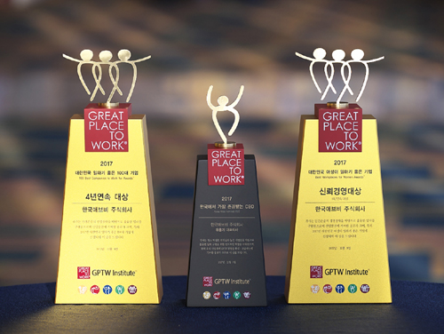 한국애브비(대표이사 유홍기)는 최근가 한국 GPTW(Great Place to Work) 주관의 ‘2017년 대한민국 일하기 좋은 일터’와 ‘여성이 일하기 좋은 일터’로 선정돼 대상을 수상했다. 또한 2017 대한민국 여성이 일하기 좋은 일터 부분에서는 종합 대상격인 신뢰경영대상도 수상했다고 밝혔다.