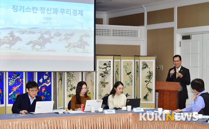 고형권 기획재정부 1차관 '새정부의 경제정책 방향, 징기스칸 정신과 우리경제'라는 주제로 강연하고 있다.
