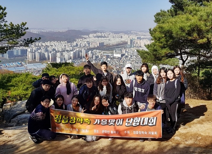 전북 정읍 장학숙은 지난 11일 입사생 추계 단합대회를 가졌다. 입사생과 직원 40여명이 함께 한 이날 행사는 관악산 둘레길 걷기와 환경정화활동, 화합의 장 순서로 진행됐다.