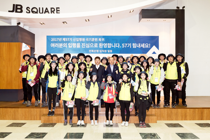 JB금융그룹 전북은행은 13일 전북은행 본점 연수원에서 2017년 신입행원 연수 입교식을 갖고 인재 육성을 위한 강한 JB MAN 양성에 들어갔다.