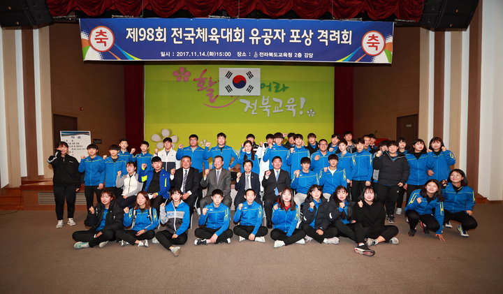 전라북도교육청은 학교장, 학생선수, 학교운동부지도자, 지도교사 등이 참석한 가운데 제98회 전국체육대회 유공자 포상 격려회를 14일 개최했다.