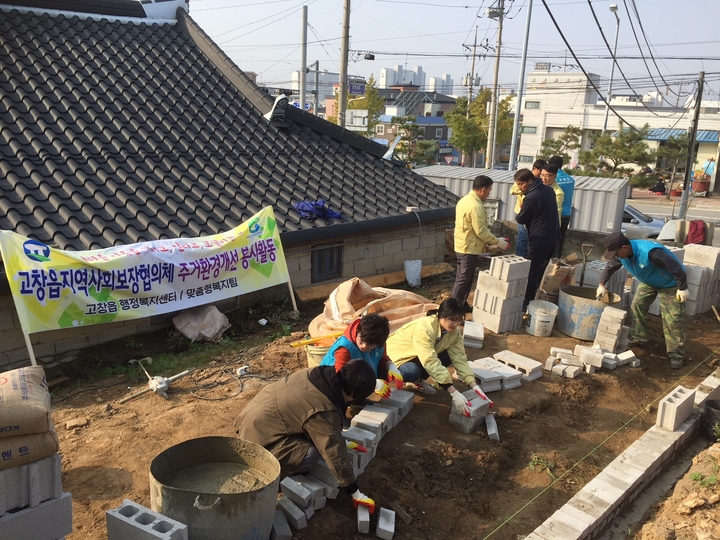전북 고창군 고창읍지역사회보장협의체와 고창읍 행정복지센터 직원들이 지난 여름 한 독거노인 주택에 폭우로 무너진 담장에 대해 무너진 담장 철거와 담장 설치 등 주거환경 개선을 위한 봉사 활동을 실시했다고 16일 밝혔다.