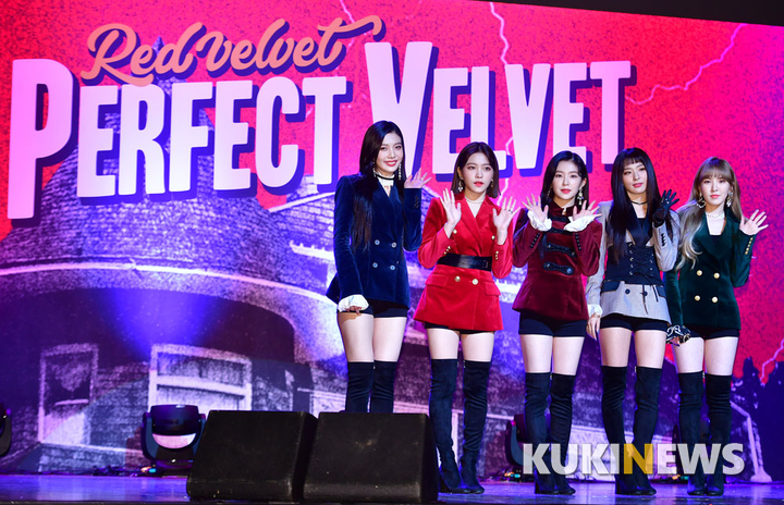 걸그룹 레드벨벳(웬디, 슬기, 아이린, 예리, 조이)이 16일 오후 서울 삼성동 SM타운 코엑스 아티움에서 열린 정규 2집 '퍼펙트 벨벳(Perfect Velvet)' 발매 기념 공연에서 포즈를 취하고 있다.