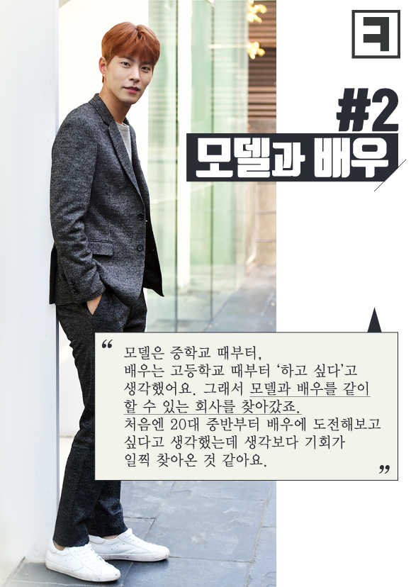 “모델은 중학교 때부터, 배우는 고등학교 때부터 ‘하고 싶다’고 생각했어요. 그래서 모델과 배우를 같이 할 수 있는 회사를 찾아갔죠. 처음엔 20대 중반부터 배우에 도전해보고 싶다고 생각했는데 생각보다 기회가 일찍 찾아온 것 같아요.”