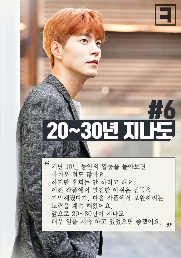 “지난 10년 동안의 활동을 돌아보면 아쉬운 점도 많아요. 하지만 후회는 안 하려고 해요. 이전 작품에서 발견한 아쉬운 점들을 기억해뒀다가, 다음 작품에서 보완하려는 노력을 계속 해왔어요. 앞으로 20~30년이 지나도 배우 일을 계속 하고 있었으면 좋겠어요.”