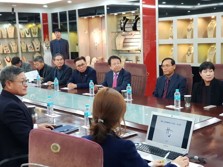 방문 주요 일정은 지난 20일 청도해주공예품유한공사를 방문해 공장을 둘러보고 관계자들과 간담을 가졌고 이어 10여개 주얼리 기업 관계자들과 간담을 가졌다.