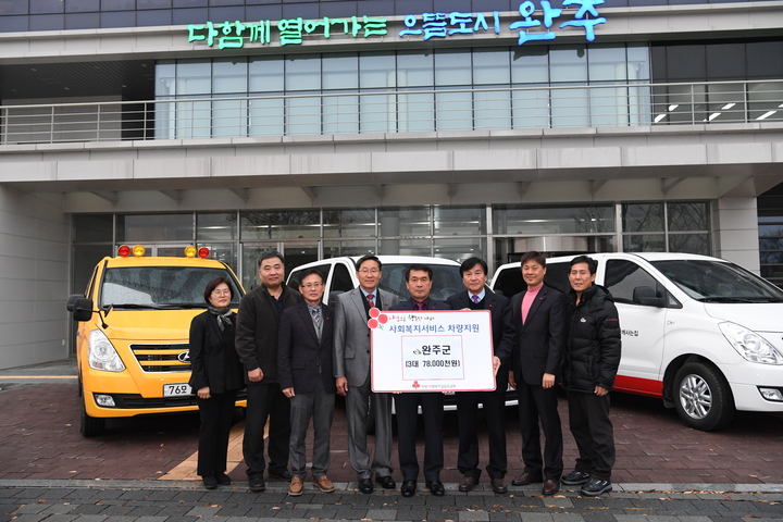 전북사회복지공동모금회가 완주군에 사회복지서비스 차량 3대를 전달했다.