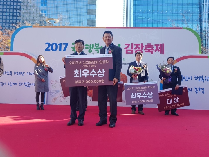 지난 5월부터 7월 말까지 전국 31개 김치 업체에서 출품한 김치에 대해 소비자와 전문가 패널이 참여하는 관능 평가를 실시했으며, HACCP 인증, 농업과 연계성, 소비자 접근성 등 엄정한 심사를 거쳤다.