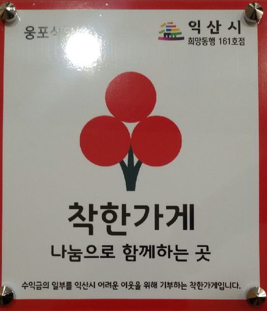 전북 익산시 웅포면 지역사회보장협의체는 지난 23일 착한가게 2호점 “웅포식당”을 착한가게로 탄생하는 현판을 전달했다.