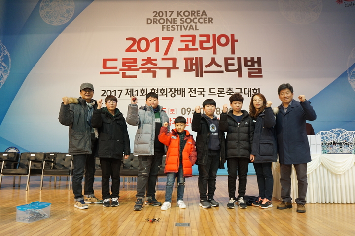 지난 25일 전주대학교에서 열린 '2017 협회장배 전국드론축구대회 코딩'드론부문에서 용성초 어린이들이 1,2,3위를 차지하는 쾌거를 이뤘다.