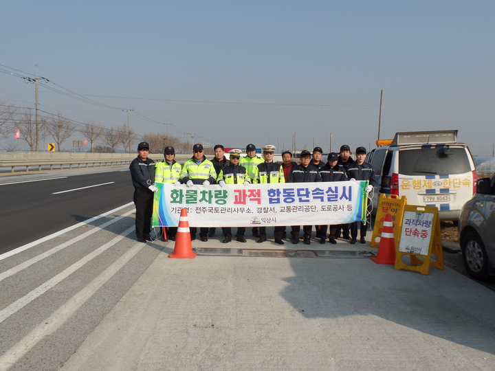 전북 익산시는 지난 27일 익산경찰서, 전주국토관리사무소 등 유관기관과 함께 과적발생 취약 지역을 중심으로 무작위 합동 단속을 실시해 약 30여대의 과적 차량을 지도 단속했다.