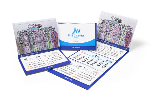 달력에는 자폐성 장애 2급인 한부열 작가의 작품 ‘한부열과 아줌마들’이 사용됐다. 이 작품은 ‘2016 JW 아트 어워즈’ 최우수상 수상작이다. 작가를 응원하는 이들이 함께 하는 모습을 독특한 드로잉 기법으로 표현했다.