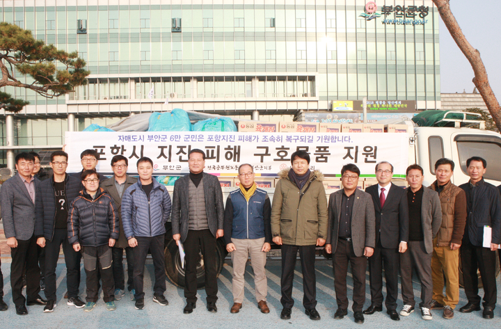 이날 부안군은 포항지역 이재민들을 돕기 위해 모포와 쌀, 라면 등의 구호 물품을 전달했으며 이 물품들은 포항시 현지에서 필요한 물품 위주로 준비했다.